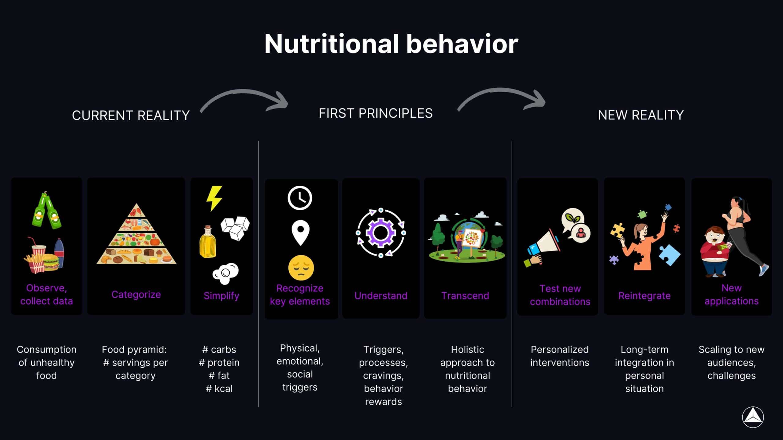 In this example, we applied first principles thinking to assess why people struggle with their nutrition despite knowing which choices are good for them and which ones are not. This process resulted in the creation of our Holifood experience.
